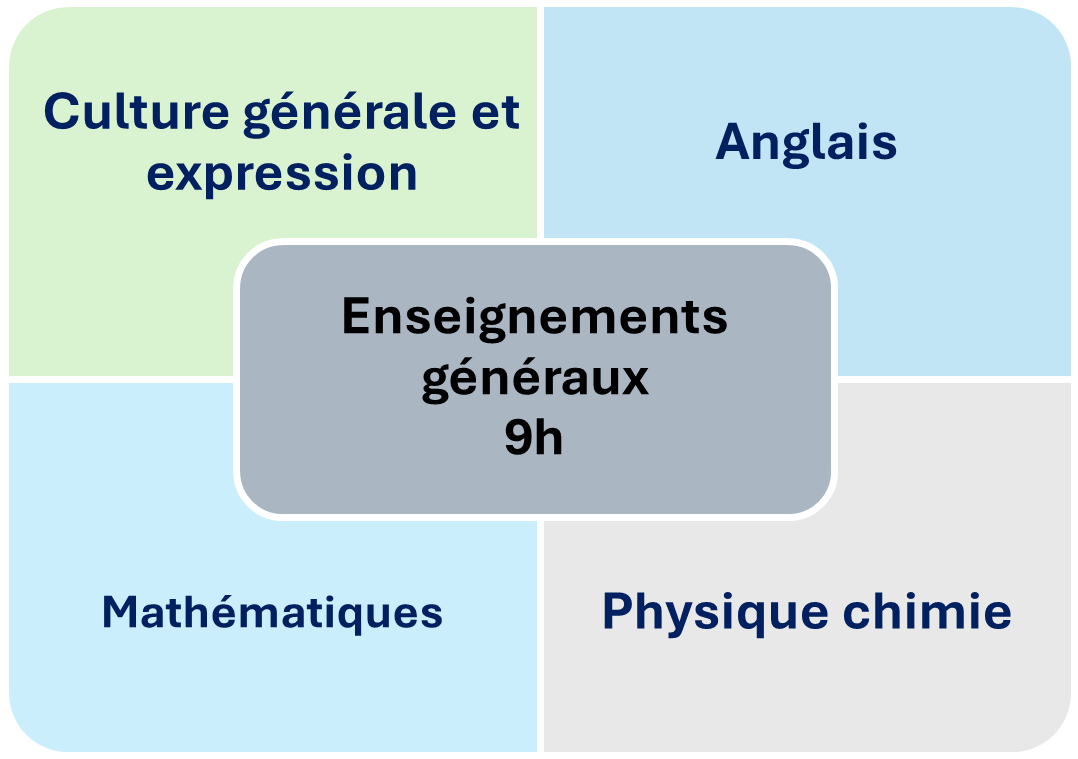 Les étudiants ont 30 h d’enseignements par semaine, alternant entre enseignements professionnels et enseignements généraux qui viennent renforcer les compétences professionnelles.